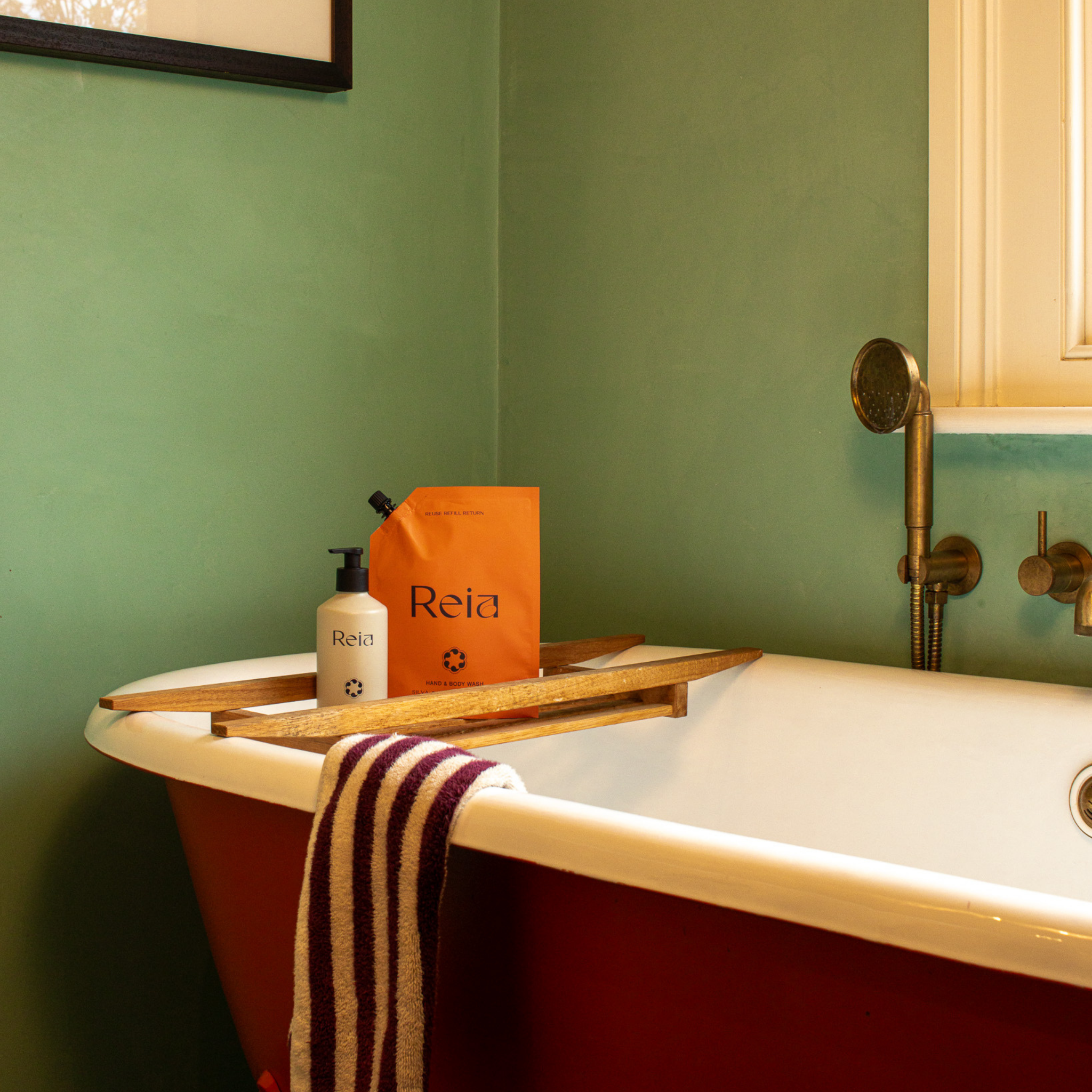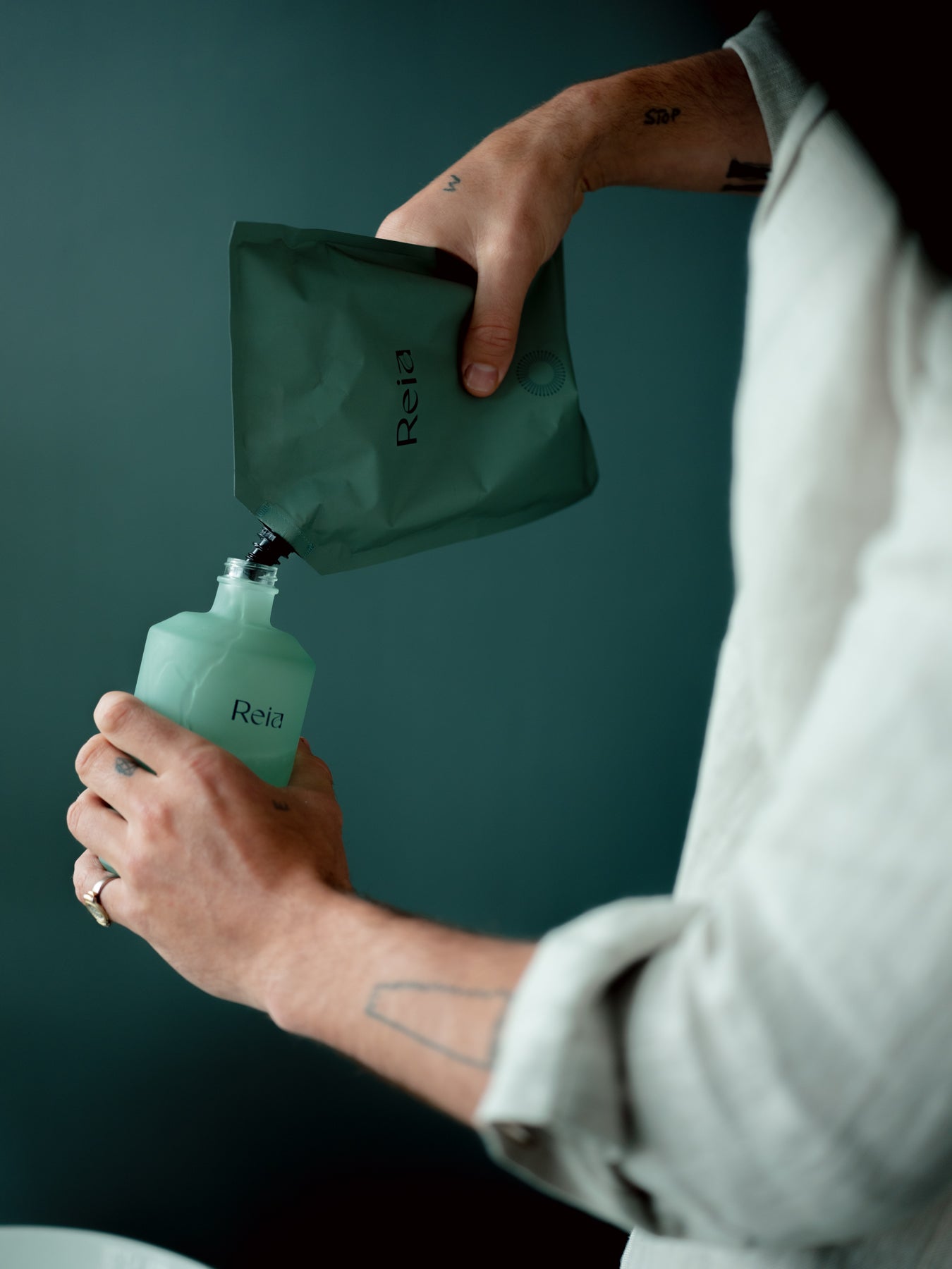 Once the forever bottle is empty, it can be refilled time and time again. We work with a specialist partner to provide refill pouches that are 100% recyclable and easy to return – meaning your used Reia bathroom products will never be sent to landfill.